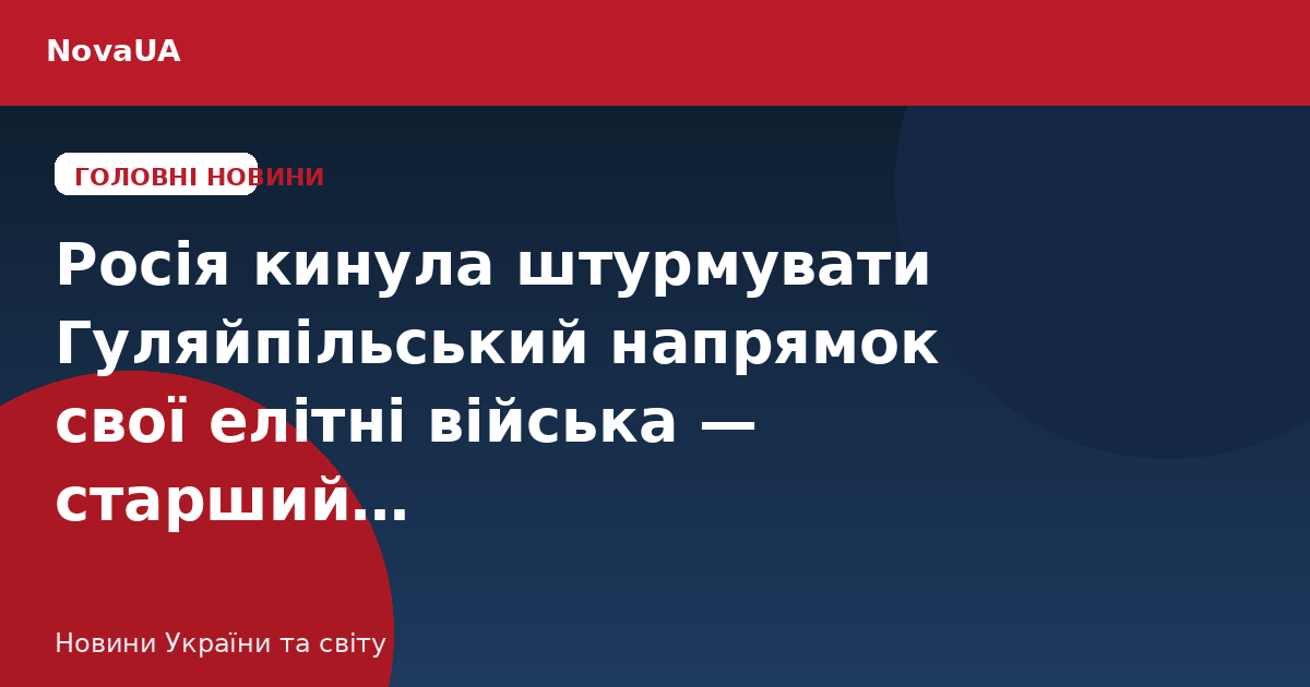 Росія кинула штурмувати Гуляйпільський напрямок свої елітні війська — старший…